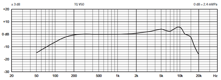 感度:2.4mV/Pa = -52.5dBV +/-3dB