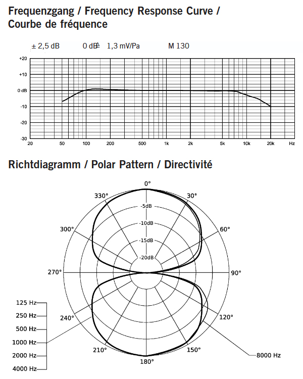 M 130は、ミッドサイドテクニックを使って真のステレオイメージを録音または放送する際に優れた結果をもたらします。